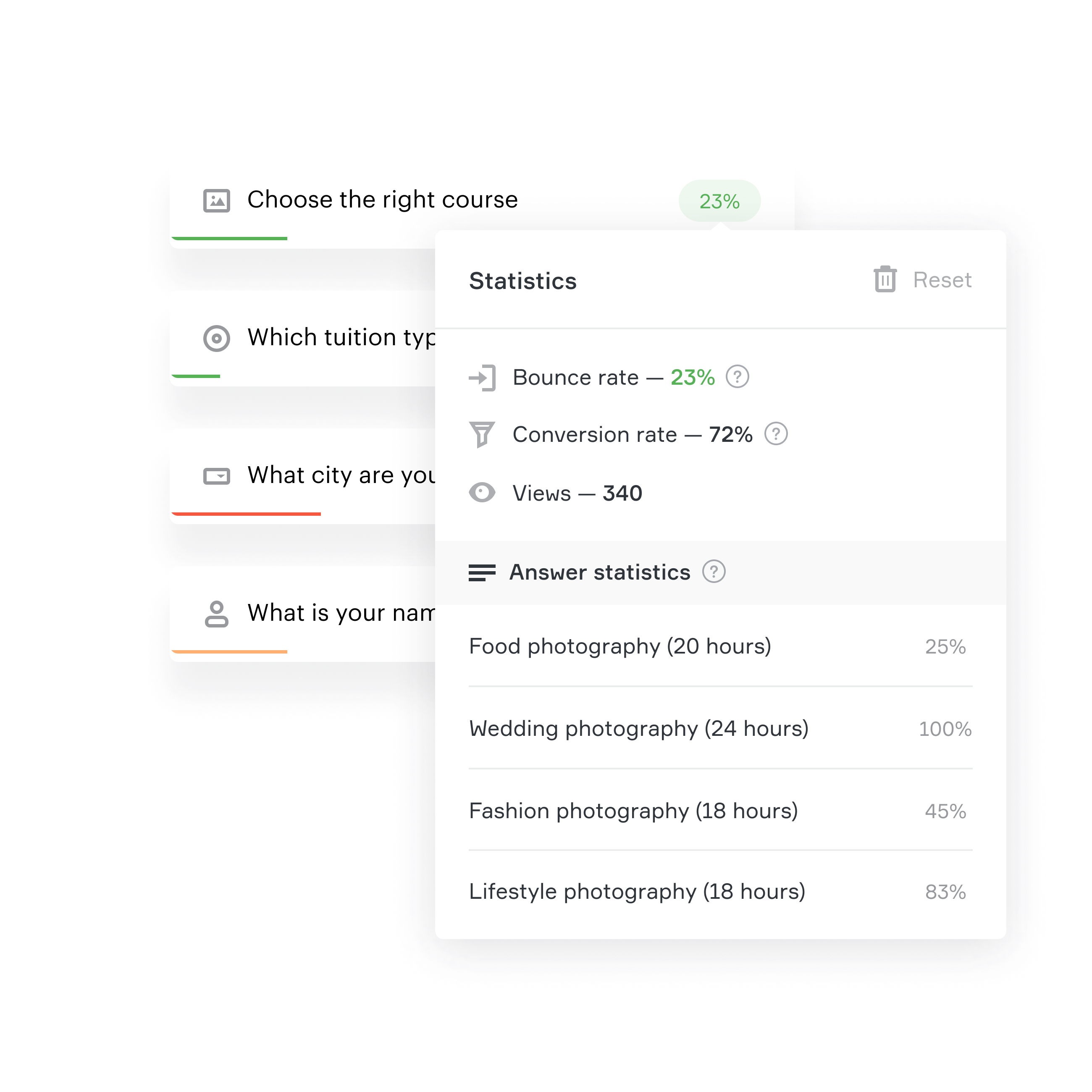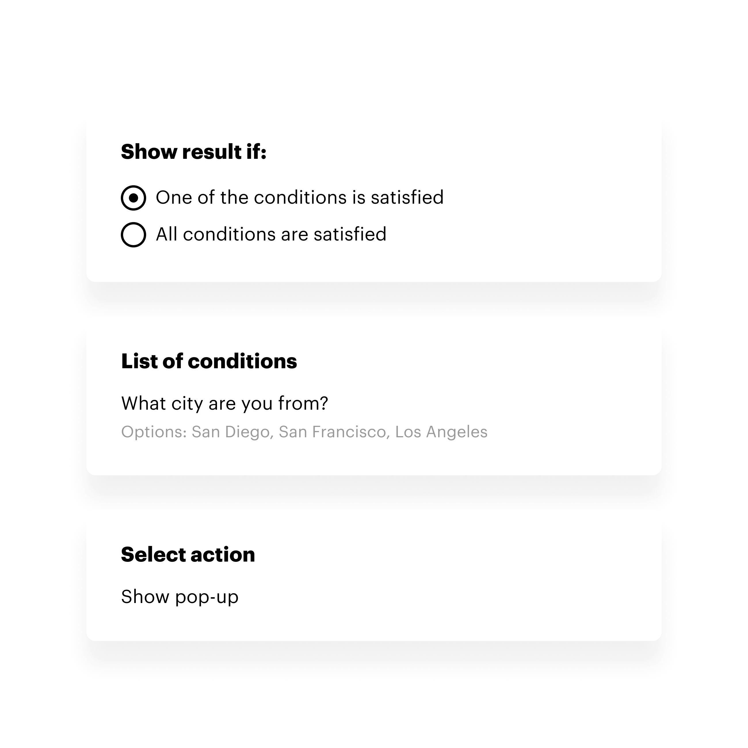 訪問者ごとにクイズをパーソナライズしましょう:回答に応じて質問を変えていきます。訪問者は関係のない質問に答える必要がなくなり、より詳しい情報を得ることができます。